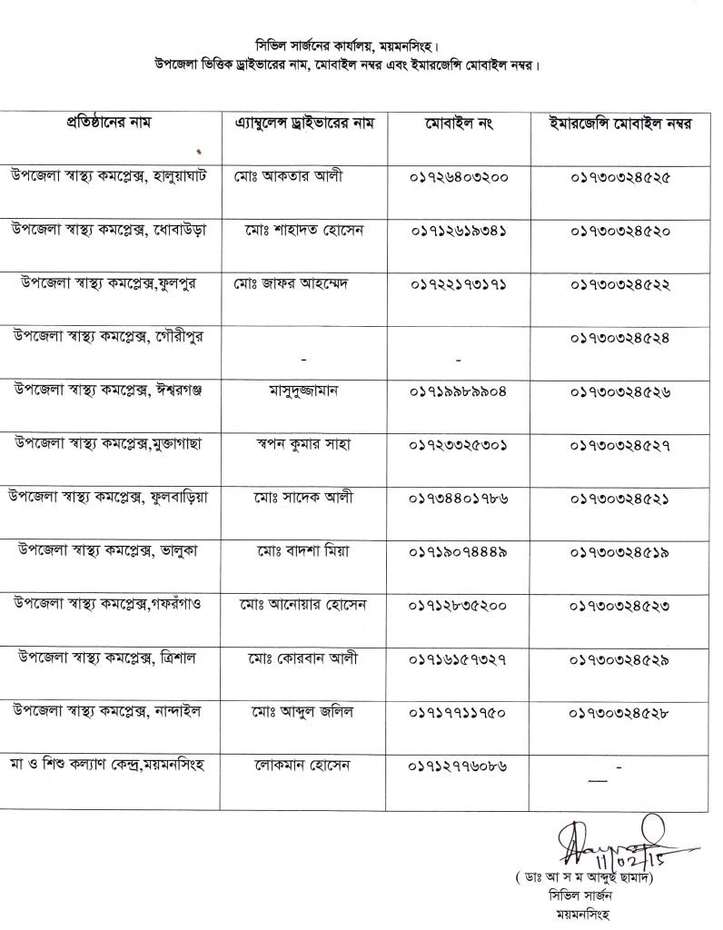 Emergency Numbers (ইমারজেন্সী নাম্বার), Ambulance (অ্যাম্বুলেন্স)